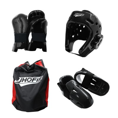 JHOFIF Martial Arts Karate Protective Sparring Gear Package Deal/Gift Adjustable Adults & Kids Headgear, Gloves & Kicks for MMA, Taekwondo, Boxing Training (Black, X-Large)